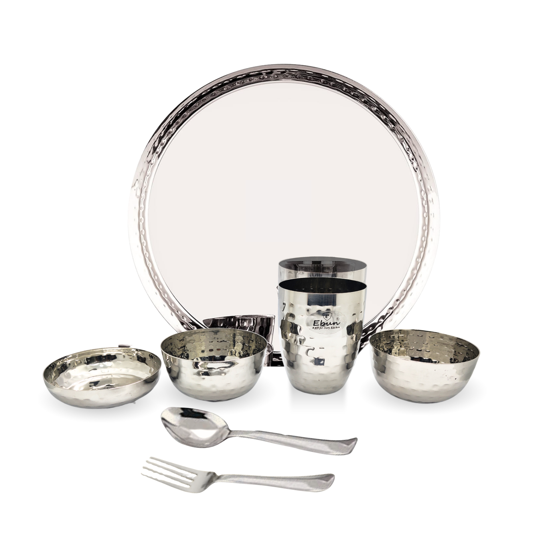 Ebun Stainless Steel Hand Hammered Design Dinner Set - Pack of 1