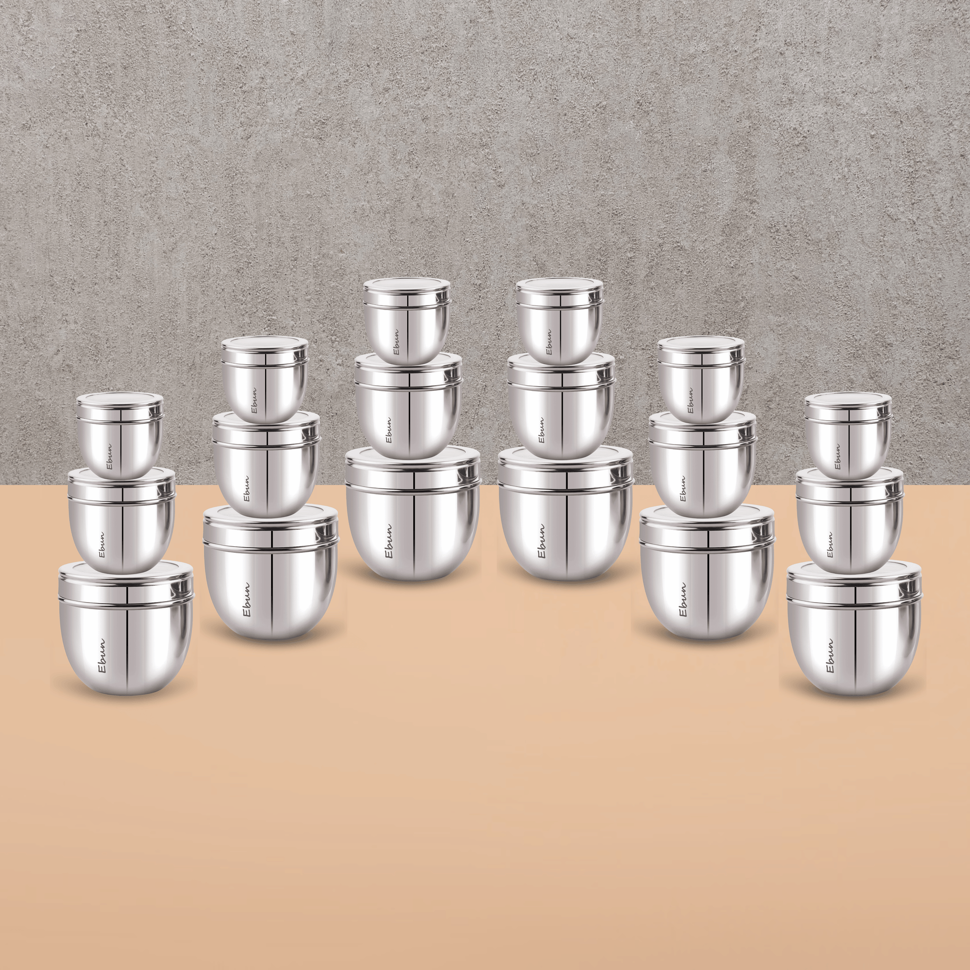 Ebun Stainless Steel Top See Through Containers 200 Ml, 300 Ml and 450 Ml Capacity - 18 Pcs Combo Set